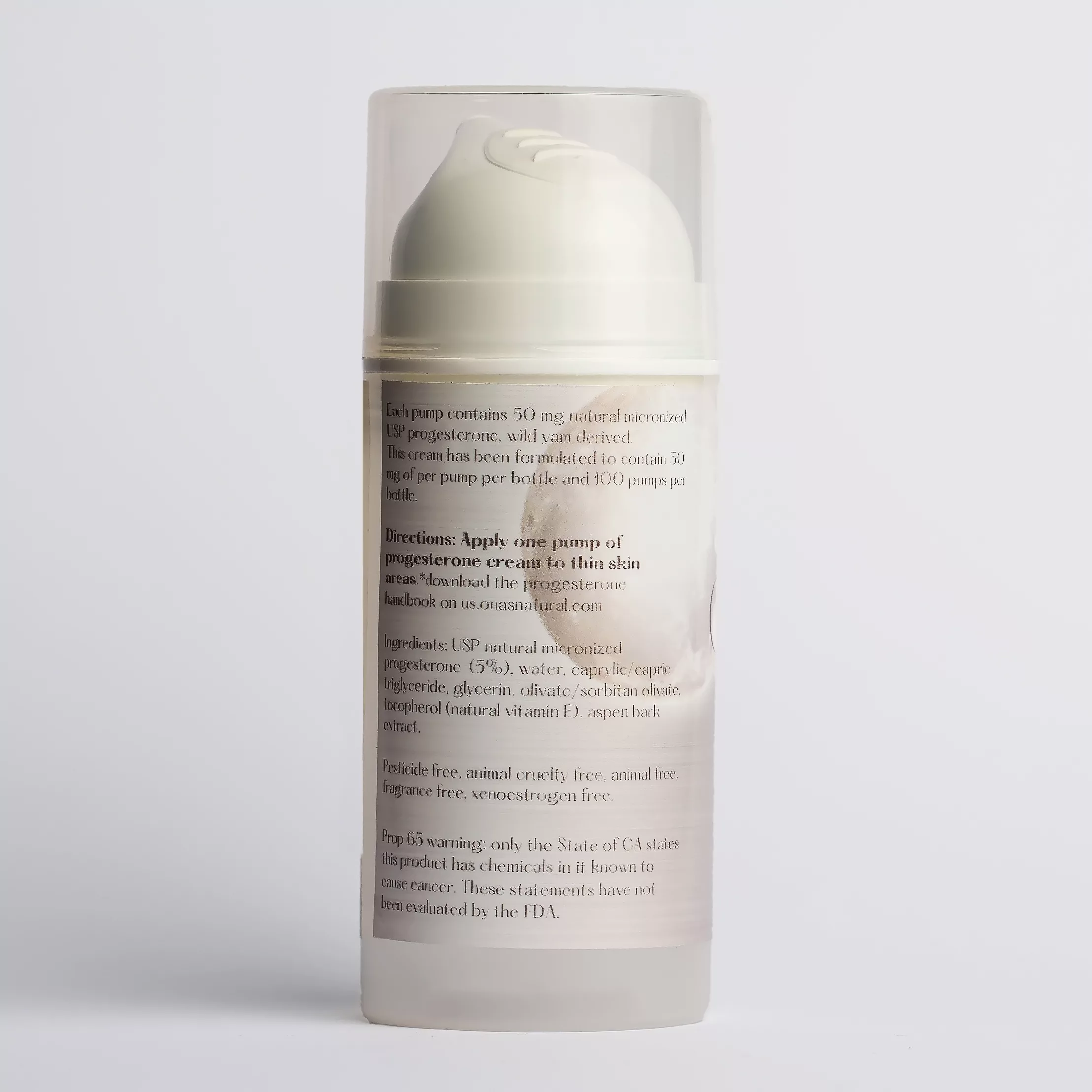 The cream contains 5% Natural USP Progesterone, purified water, fractionated coconut oil, glycerine, 5% Natural Vitamin E, olivate/sorbitan, and aspen bark extract.